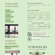 - Az egyensúlyt, koordinációt fejlesztő gyakorlatok is az órák része. A nyújtás és mobilizálás segít az izomfeszesség ellen, sérülések megelőzésében.