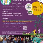 - 14:00 – 16:00 – Játék, alkotás és kerti kalandok a gyerekekkel (nyitott családi program a Bábozd Zöldre Egyesület és a Pomázi Ökokör közös szervezésében)