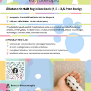 Az állatasszisztált foglalkozás/terápia egy egyre elterjedtebb prevenciós és intervenciós eljárás, mely speciálisan képzett állatok és szakemberek közreműködésével történik. Számos hazai és külföldi kutatásban vizsgálták az állatok emberekre gyakorolt pozitív hatásait, mely alapján a terápiás állat jelenléte stresszcsökkentő, komfortérzet-növelő hatással bír, emellett felkelti és fenntartja a figyelmet és növeli a kommunikációs készséget. A csoportfoglalkozások során célunk, hogy támogassuk a gyermekeket önbizalmuk növelésében, hangulatuk javításában, illetve empátiás, szociális és kommunikációs készségeik fejlődésében.