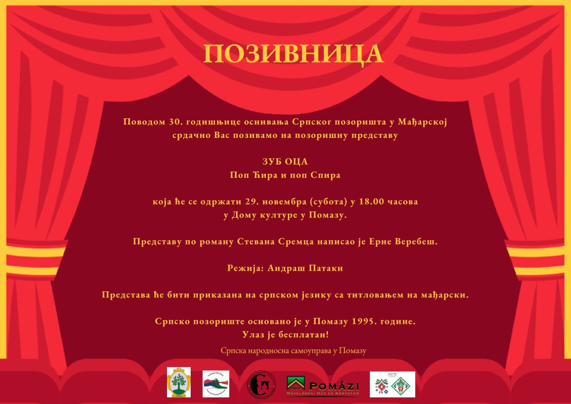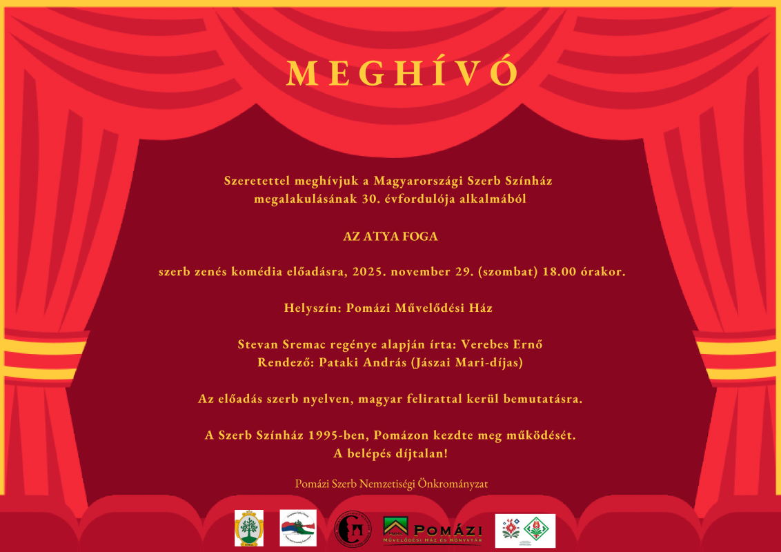 Sok szeretettel várunk minden kedves érdeklődőt a Magyarosrszági Szerb Színház megalakulásának 30. évfordulója alkalmából
