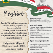 Pomáz Város Önkormányzata szeretettel meghívja Önt és kedves családját az 1848/49-es forradalom és szabadságharc tiszteletére megrendezésre kerülő városi megemlékezésre!