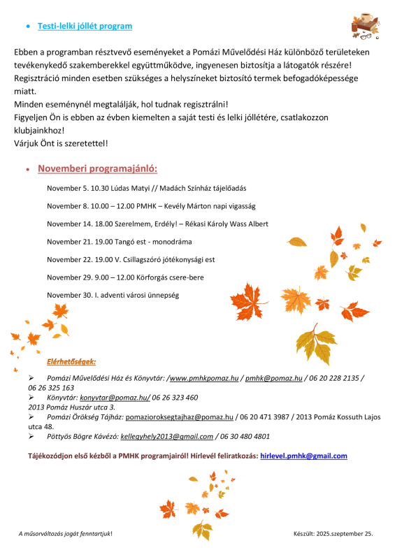 Októberi műsor