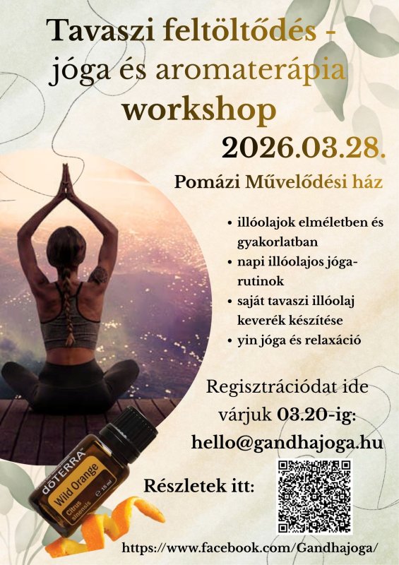 Gyere el és rázd le magadról a tavaszi fáradtság érzését egy különleges aromaterápiás, kezdőknek is könnyen követhető, jógagyakorlással, ahol az energetizáló mozgást a 100%-os tiszta doTerra illóolajok ereje támogatja, majd készítsd el saját tavaszi illatodat.