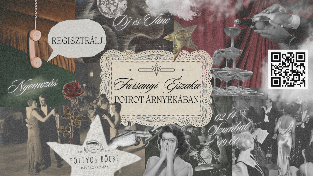 Valentin napon egy Agatha Christie-hangulatú szalonest költözik a Pöttyös Bögrébe — ahol az elegancia kötelező, a mosoly gyanús, és senki sem az, akinek látszik.