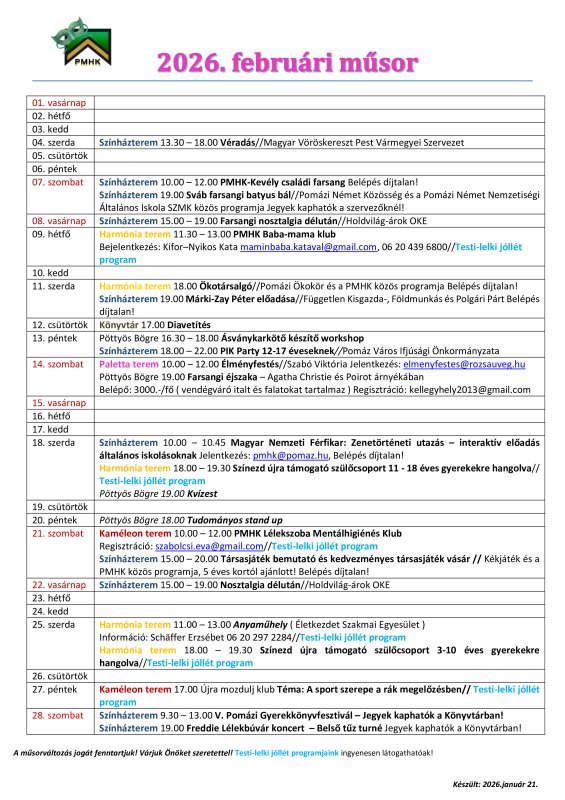 februári műsor