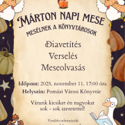 Mesélnek a könyvtárosok Program: diavetítés, verselés, meseolvasás Időpont: 2025. november 11. 17:00 óra Helyszín: Pomázi Városi Könyvtár Várunk kicsiket én nagyokat sok - sok szeretettel!